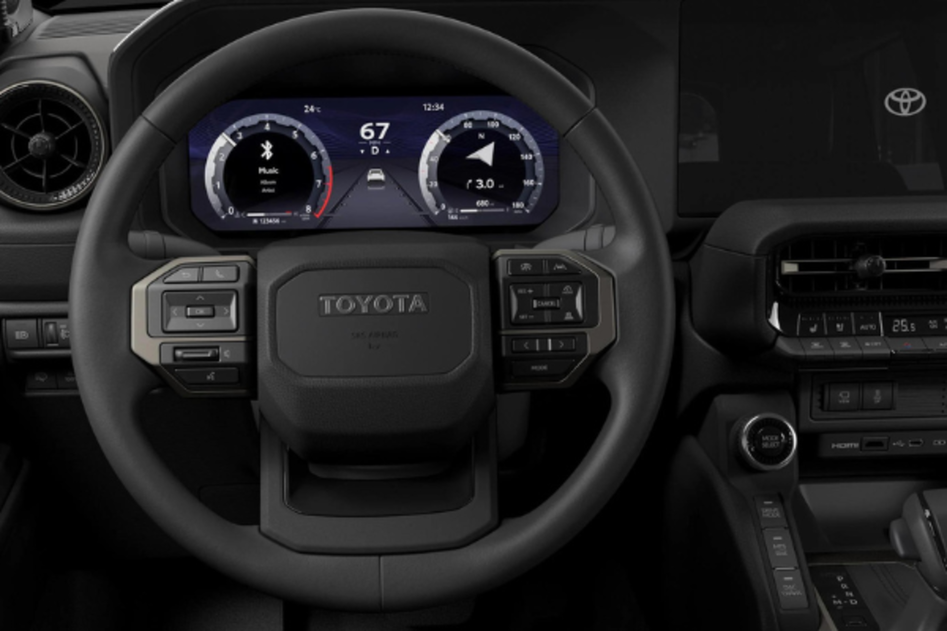 Inside, the Prado employs a clean, stylish and functional interior design with dual digital screens for the instrument cluster and multimedia system, and an intuitive layout for the switches that group basic functions together.